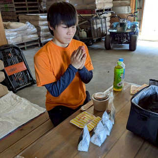 お昼には大塚米を使ったおにぎりと卵かけご飯を頂きました!