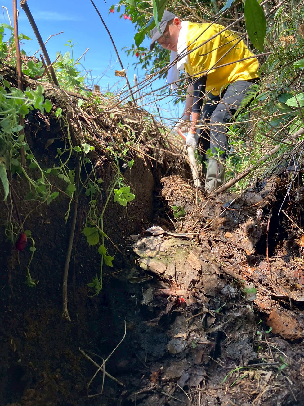 午後から別の水路にて周辺の竹切りと水路の中の土砂を取り除く作業を行いました。